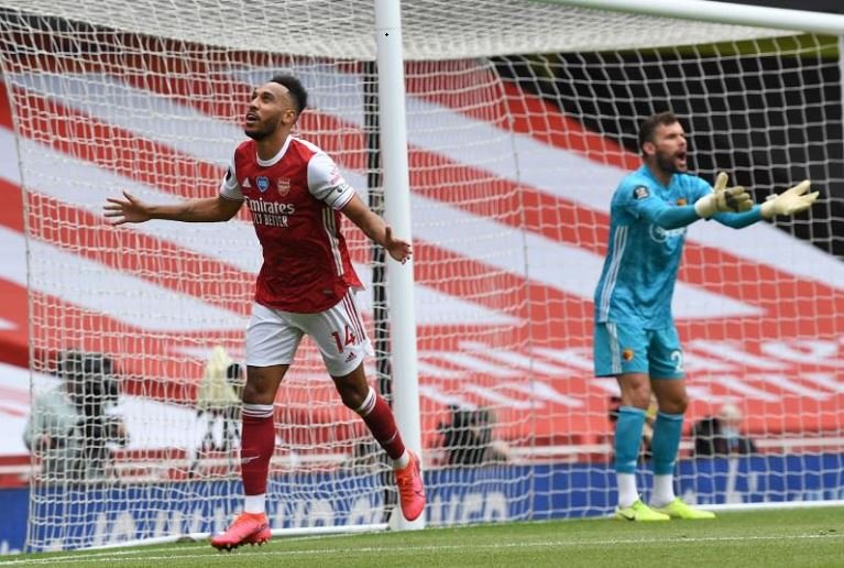 Managerless Watford were relegated from the Premier League on the final day of the season as Pierre-Emerick Aubameyang inspired Arsenal to victory.