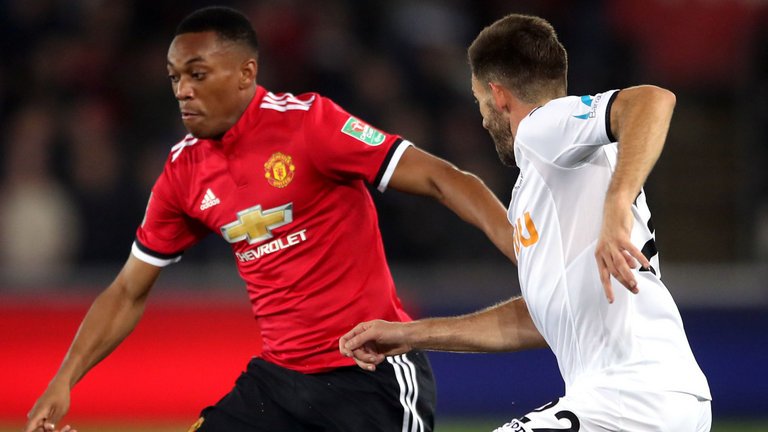 Swansea reacted well, and nearly levelled in bizarre fashion after Daley Blind’s misjudged header clear came off Oliver McBurnie and fell just wide of Sergio Romero’s right-hand post.