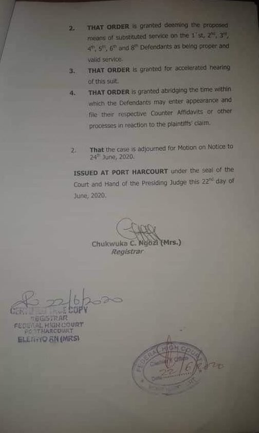 The ban order was given 22 June by Justice E.A. Obile of the Federal High Court in Port Harcourt.
