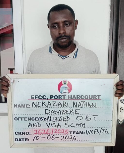The Economic and Financial Crimes Commission (EFCC) has arraigned a medical doctor, Dr. Nekabari Dambere Nathan, before Justice P. I. Ajoku of the Federal High Court sitting in Port Harcourt, Rivers State, for allegedly defrauding unsuspecting Nigerians of N39.1 million under the guise of securing foreign visas and job placements.