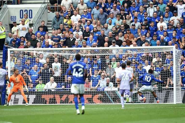 Everton goalkeeper Jordan Pickford saved a 77th-minute penalty from Danny Welbeck, awarded after Kiernan Dewsbury-Hall’s handball, to complete a perfect afternoon for the hosts.