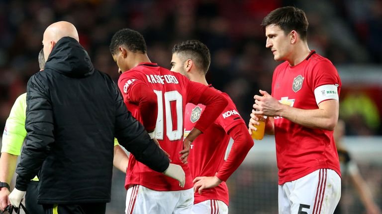 Manchester United lost Marcus Rashford to injury as they beat Wolves 1-0 in an FA Cup third-round replay at Old Trafford.