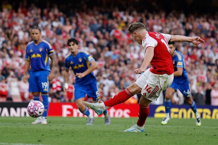 Viktor Gyokeres scores Arsenal fifth goal from the penalty spot against Leeds
