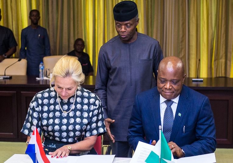 During the meeting, the Vice President also witnessed the signing of a communique on the bilateral consultations between Nigeria and Netherlands. While the Permanent Secretary, Ministry of Industry, Trade and Investment, Mr. Sunday Akpan, signed for Nigeria; the visiting Netherlands Minister signed on behalf of the Kingdom of Netherlands.