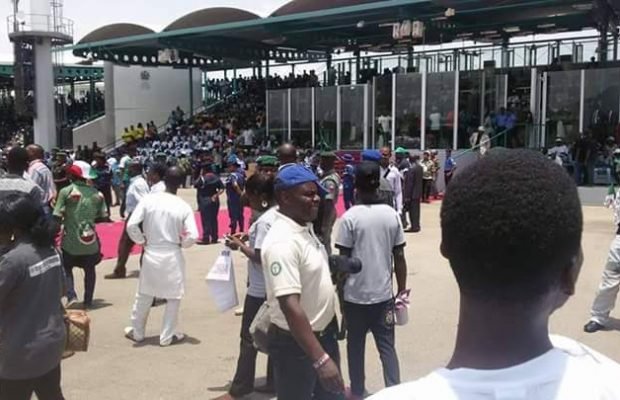The News Agency of Nigeria (NAN) reports that the event was disrupted for close to one hour by workers who barred government officials from delivering the speech from the federal government.