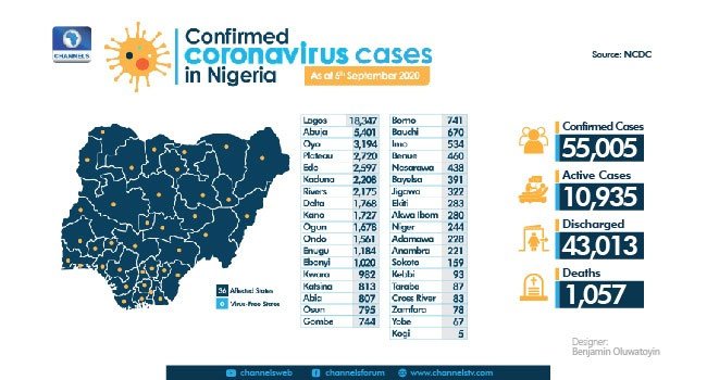 Nigeria has recorded over 55,000 confirmed cases of the novel coronavirus, according to a late-night tweet from the Nigeria Centre for Disease Control (NCDC) which was released on Sunday.