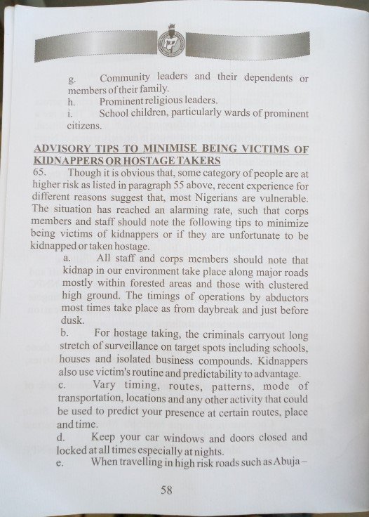 NYSC advised corps members to “establish a personal relationship with the kidnappers as early as possible and also be friendly to them by all means.”
