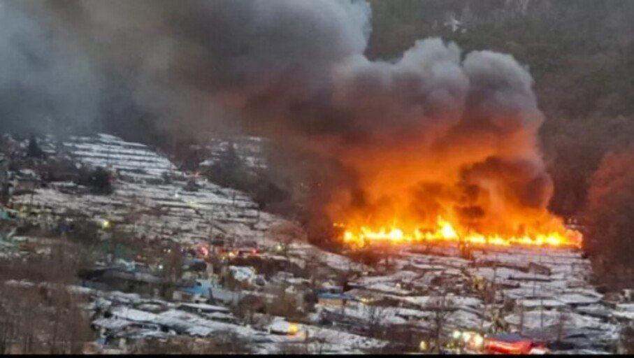 Roughly 60 homes are reported to have been destroyed in Friday morning’s blaze in Guryong Village.