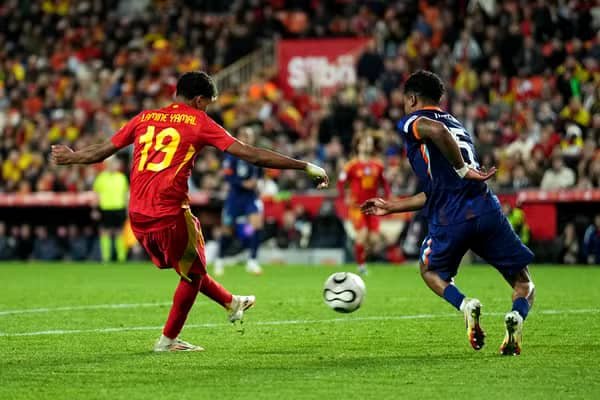 Yamal's shot which found the corner of the goal AITOR ALCALDE / GETTY IMAGES EUROPE / Getty Images via AFP
