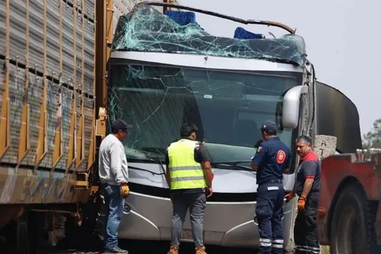 The accident occurred when the bus, run by the Herradura de Plata bus business, approached an industrial zone south of the Atlacomulco district, outside Mexico City.