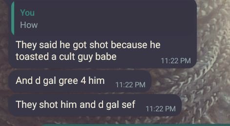 A student, who only identified herself as Mujibat stated that the level of cult shootings and killings in the school had to be stopped.